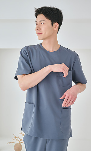 F422 - 페더 라운드넥 스냅-쿨그레이 (가벼운 원단…
