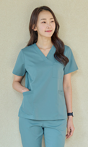 F325 - 페더 V넥 스냅-엔틱블루 (가벼운 원단)