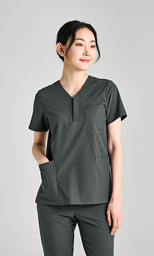F314 - 페더 V넥 스냅-그레이그린 (가벼운 원단)