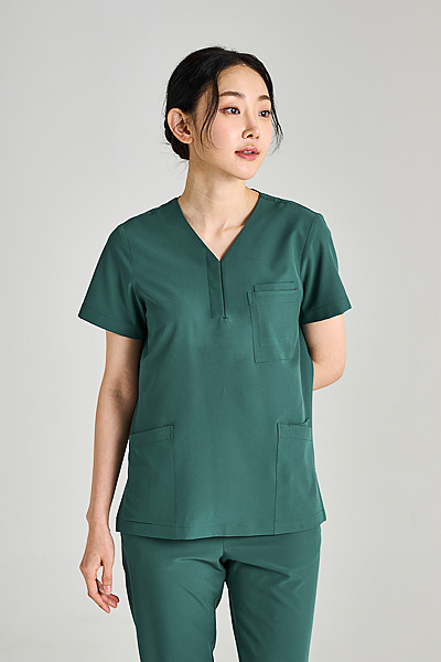 F323 - 페더 V넥 스냅-딥그린 (가벼운 원단)